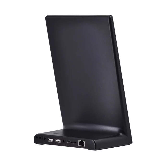 Технические характеристикиPOS-терминал состоит из наклонного дисплея и платформы, которая обеспечивает устойчивость конструкции. На обратной стороне основания находится набор портов: