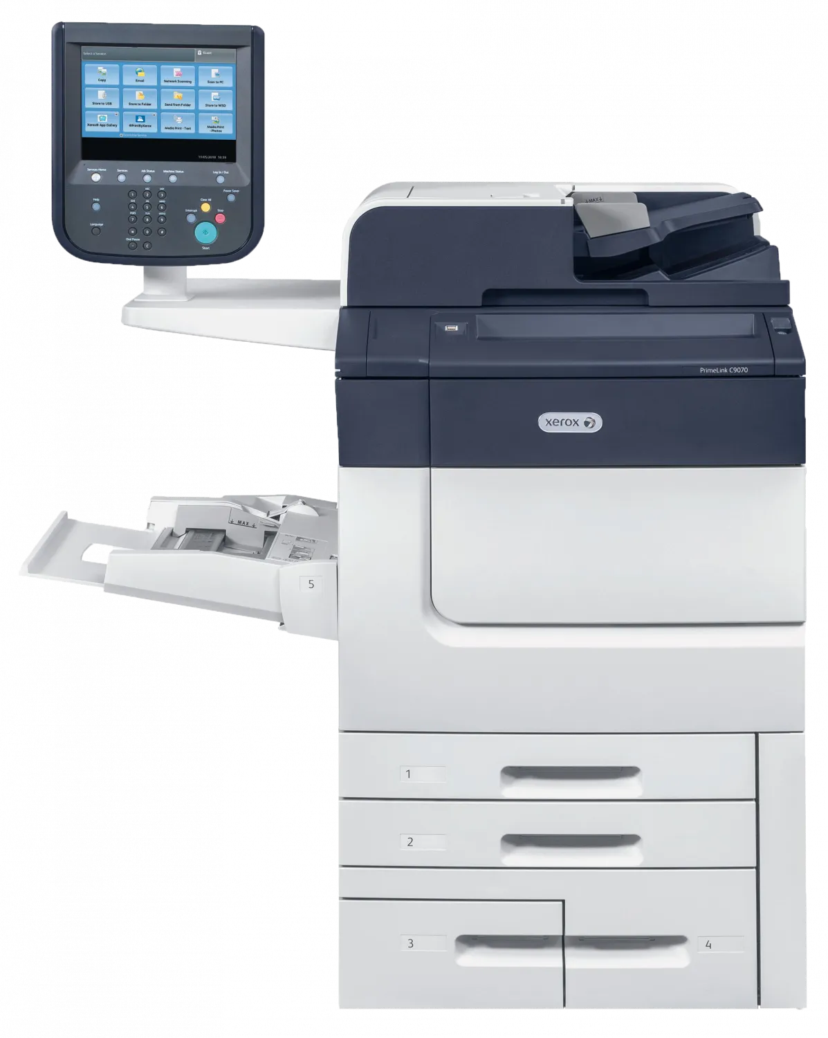 Промышленный финишер Xerox® (требуется интерфейсный модуль): Сшивание — 100 листов (90 г/м²) немелованной бумаги, 35 листов (90 г/м²) мелованной бумаги. Формат бумаги — от 182 x 146 мм до 297 x 432 мм. Макс. плотность — 350 г/м². Опции — модули перфоратора, вставки или C/Z фальцовки. Лотки — два выходных лотка, верхний лоток на 500 листов, лоток для укладки на 3000 листов размером от 148 х 146 мм до 330 х 488 мм.