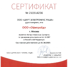 OfiTrade подтвердил статус авторизованного дилера Sharp и отвечает всем установленным требованиям.