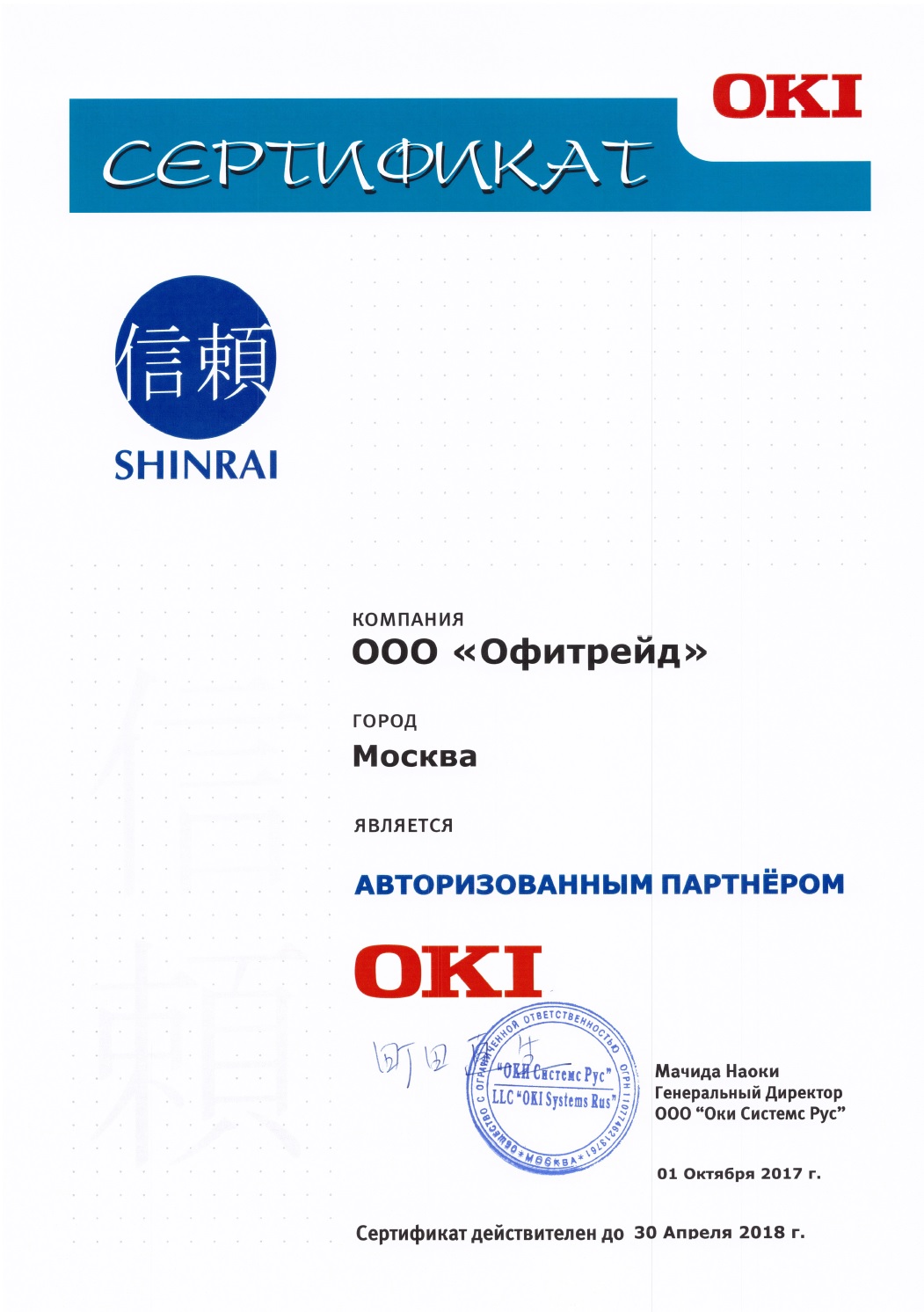 Компания OKI подтвердила статус авторизованного партнера ООО «Офитрейд». Сертификация дает нашим клиентам множество преимуществ сотрудничества, в частности: