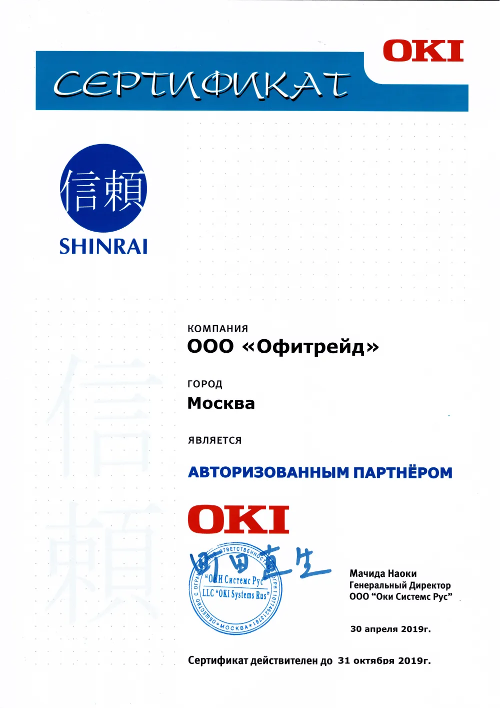 OfiTrade - авторизованный партнер OKI