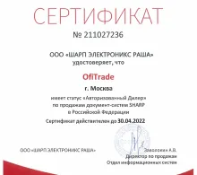 OfiTrade подтвердил статус авторизованного дилера Sharp и отвечает всем установленным требованиям.